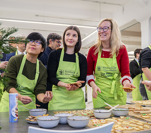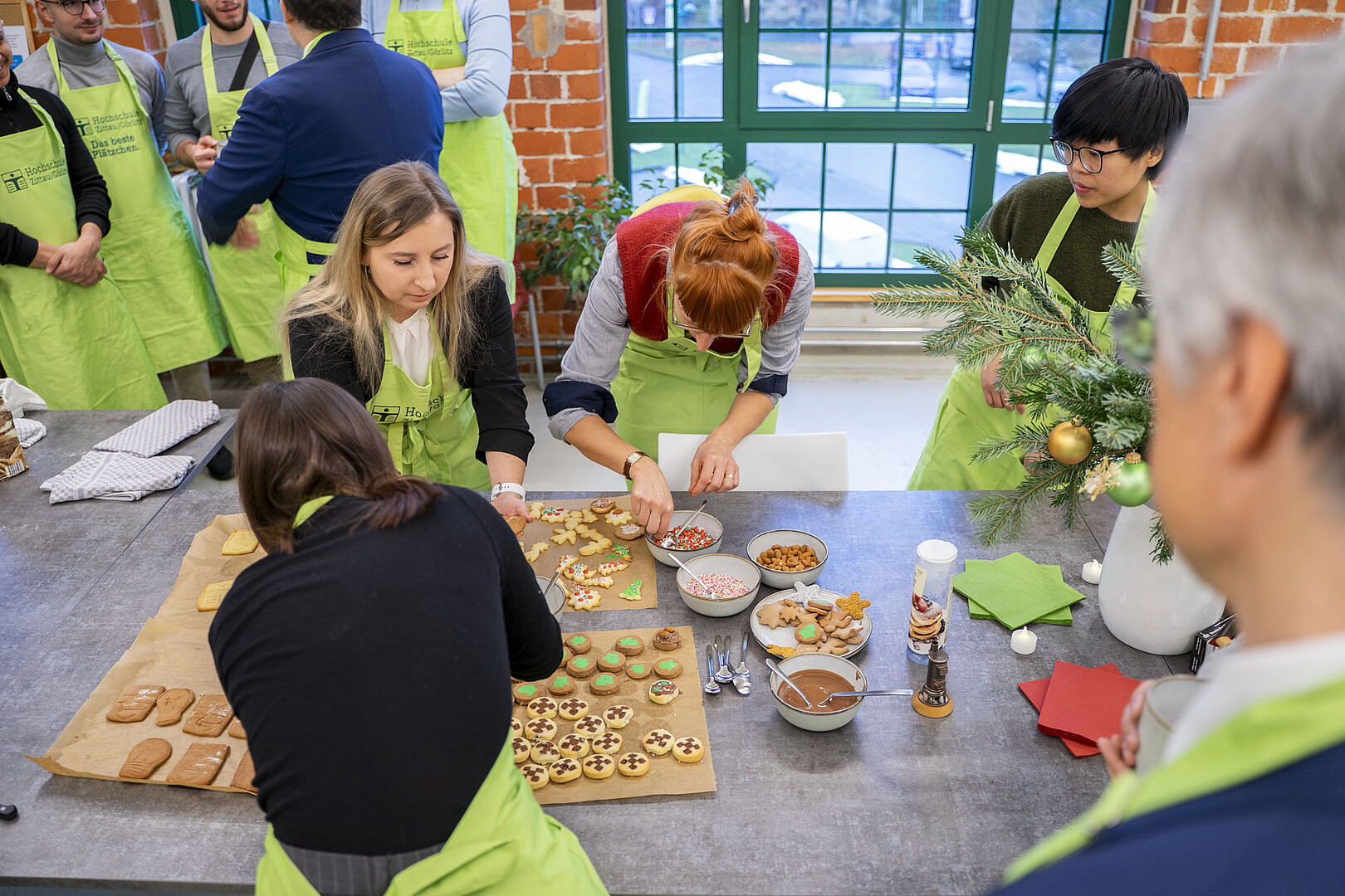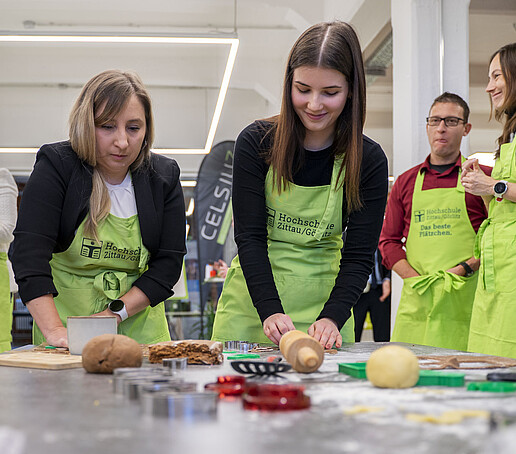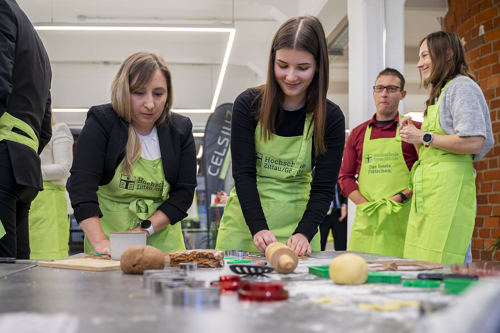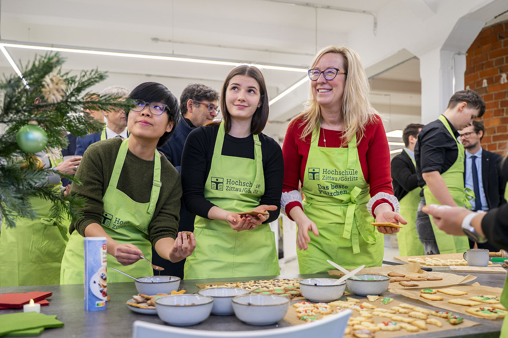 Zwanglos und anders als sonst üblich?! – Einen Tag nach dem 1. Advent kamen (Wissenschafts-)Politik, Hochschule und junge internationale Fachkräfte und Studierende nicht bei einer Konferenz, Panel-Diskussion oder ähnlichen Formaten zusammen, sondern zum vorweihnachtlichen Plätzchenbacken im CELSIUZ, dem Transferlabor der HSZG und des Verbundprojekts Saxony⁵
