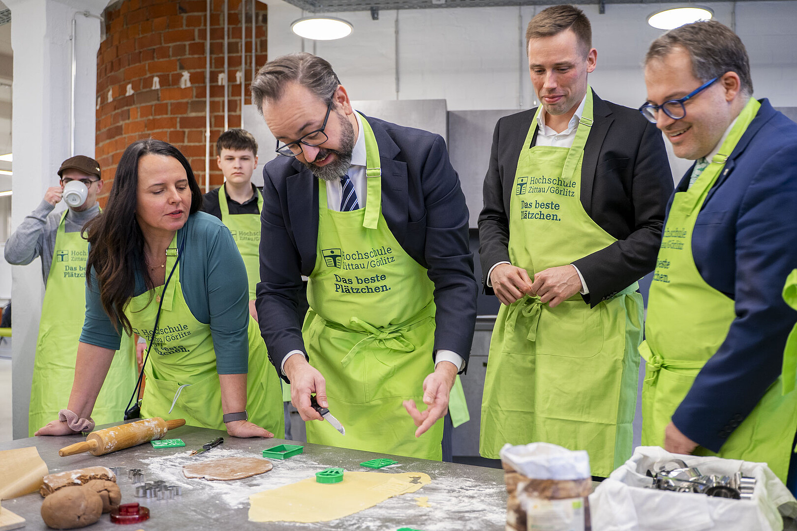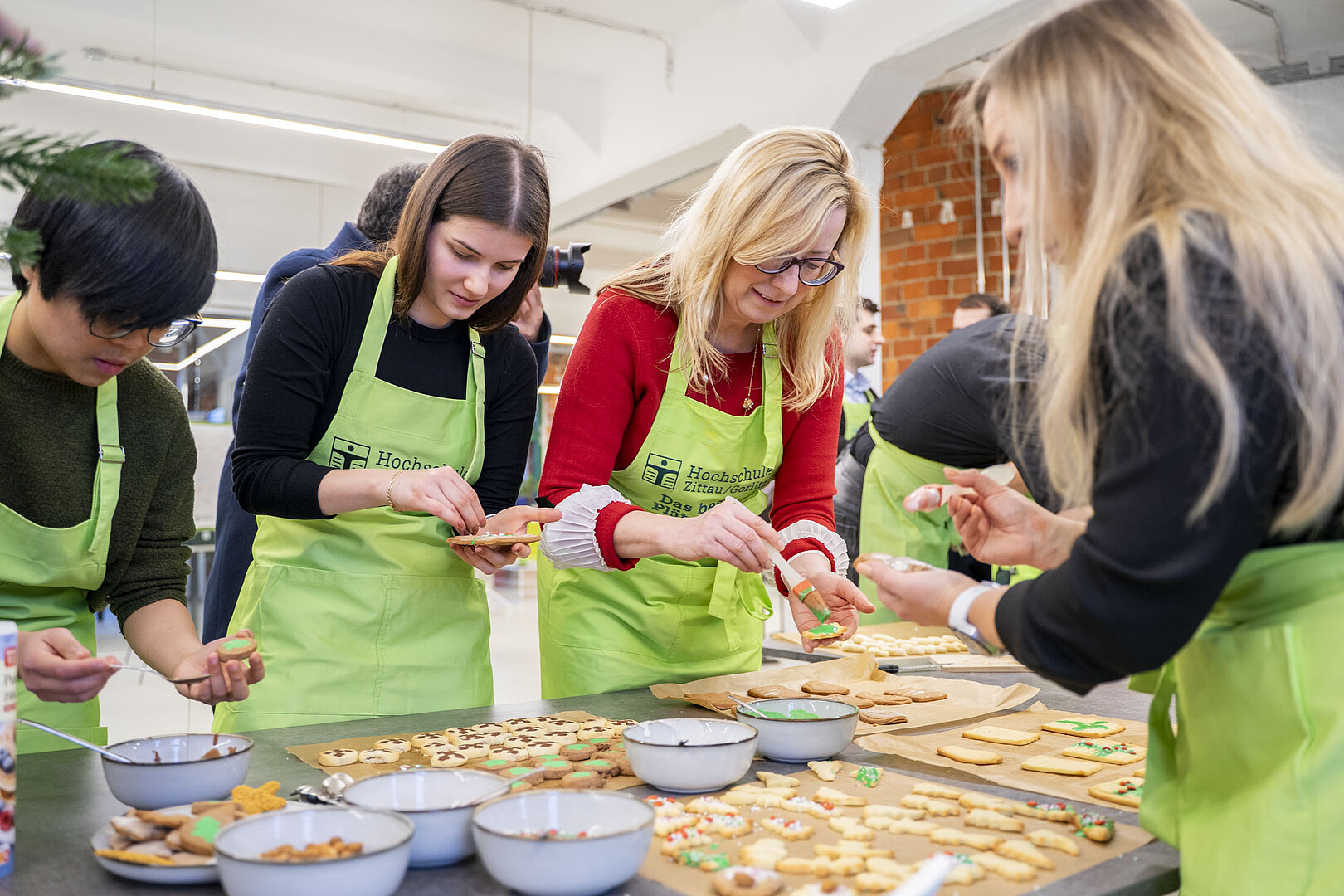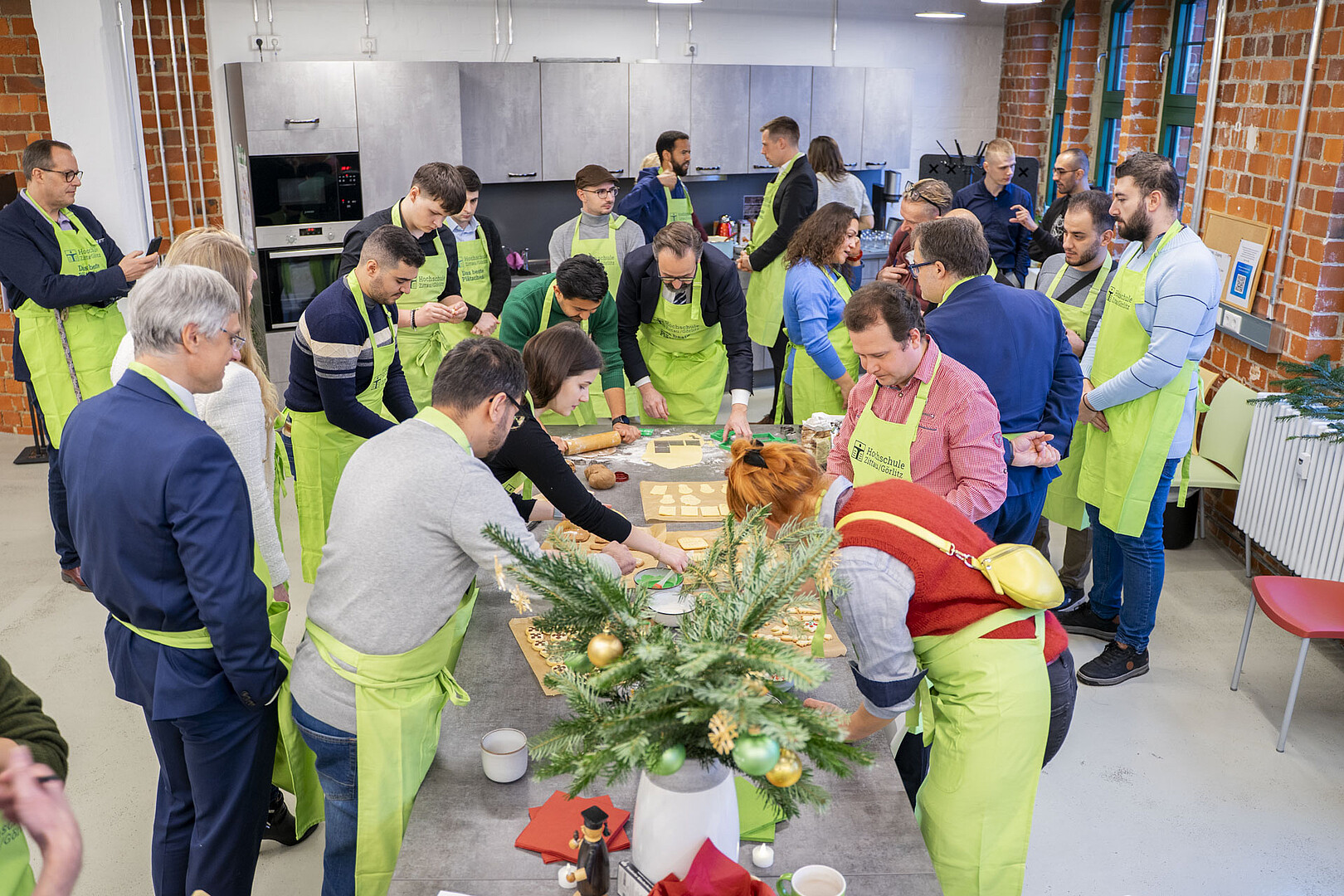 Staatsminister Sebastian Gemkow besucht die HSZG im Celsiuz zum gemeinsamen Plätzchenbacken und Austausch mit Studierenden aus dem internationalen Raum.