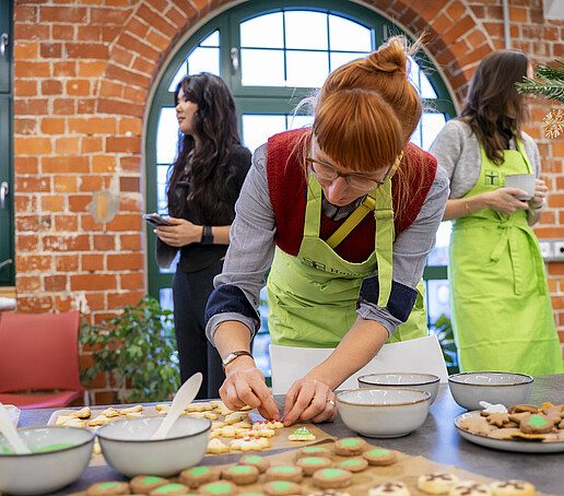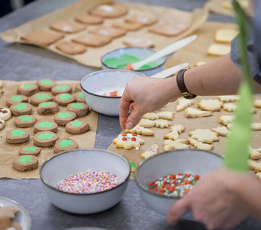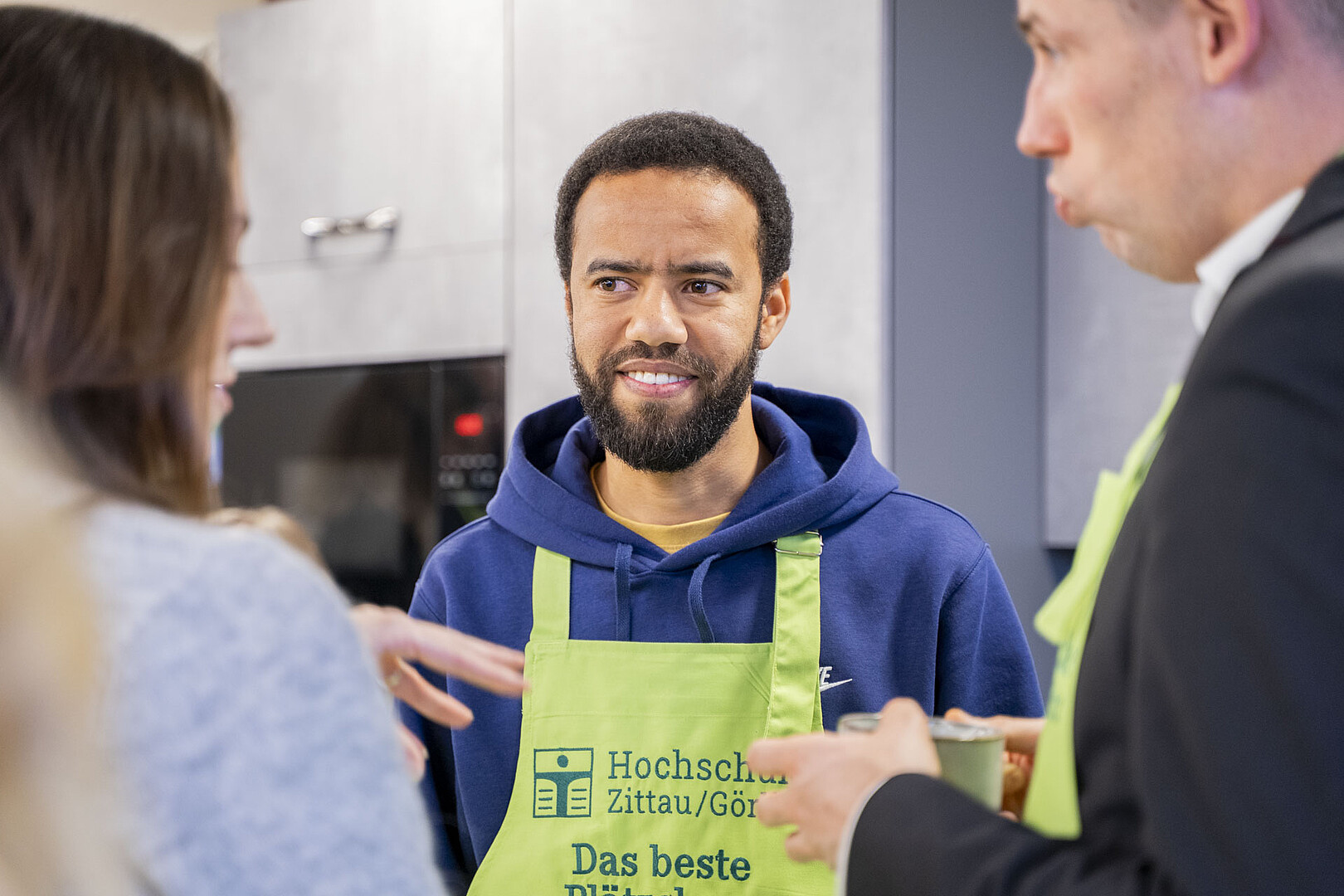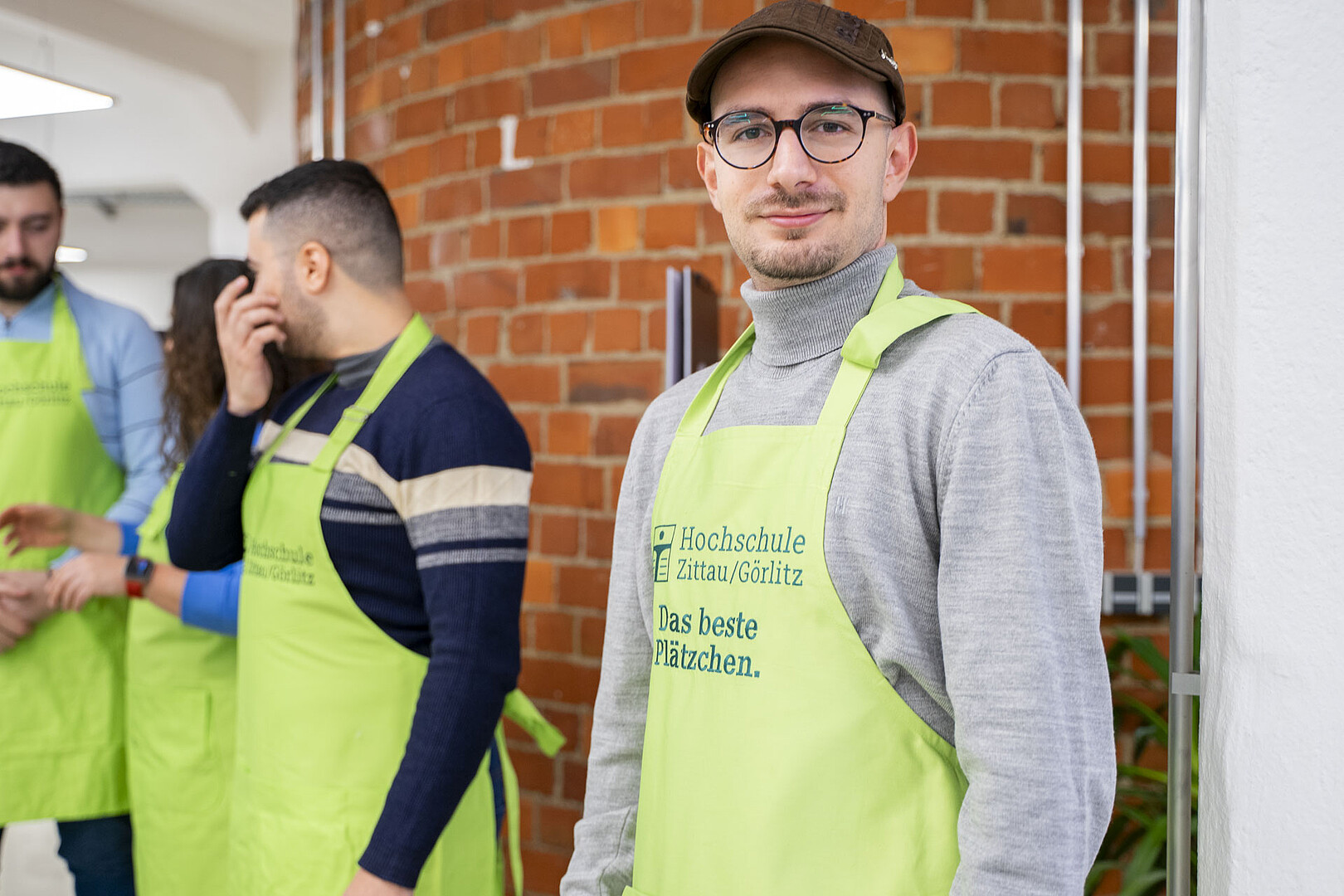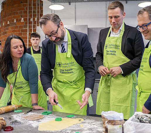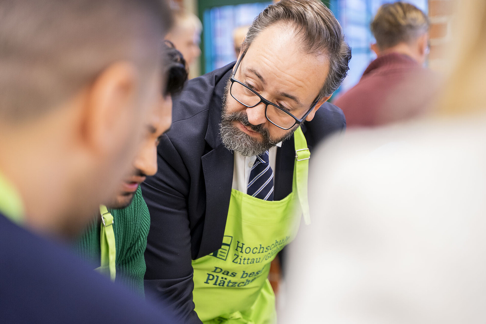 Staatsminister Sebastian Gemkow besucht die HSZG im Celsiuz zum gemeinsamen Plätzchenbacken und Austausch mit Studierenden aus dem internationalen Raum.