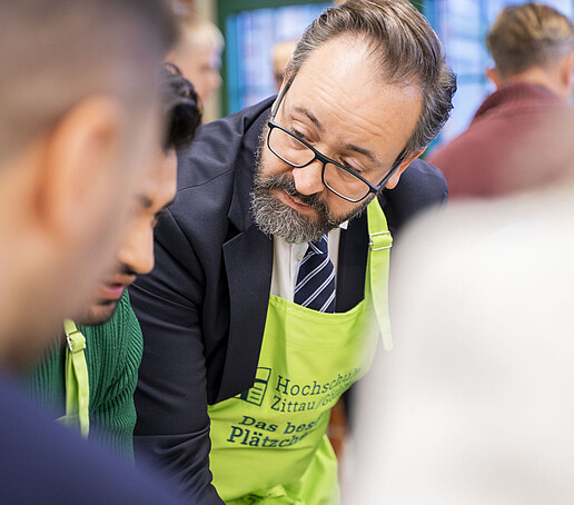 Mit seinen Begrüßungsworten betonte der Rektor der HSZG, Prof. Dr.-Ing. Alexander Kratzsch, dass der Freistaat Sachsen Internationale Fachkräfte brauche und leitete damit zu der zwanglosen Veranstaltung über.