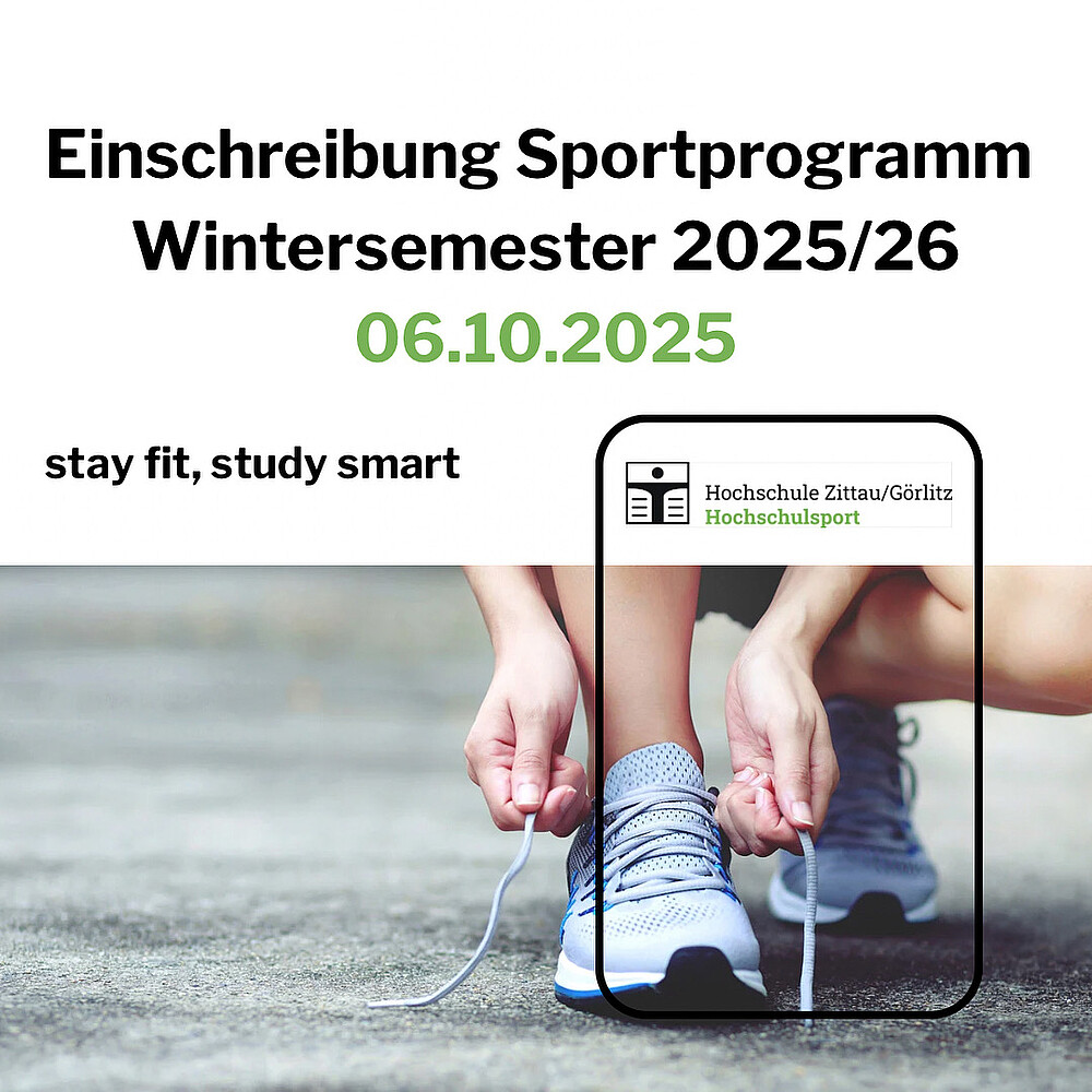 Unsere Online-Einschreibung für unsere Sportkurse im Wintersemester 2025/26 startet am Montag, 06.10.2025, um 07:00 Uhr. Die Kurse beginnen eine Woche später, ab Montag, 13.10.2025. Wählt aus über 40 Sportangeboten. Das aktuelle Programm ist bereits online und einsehbar. Die Buchung ist auch bequem über die HSZG App möglich. Bitte beachtet, dass die Bezahlung ausschließlich online per Überweisung erfolgt.