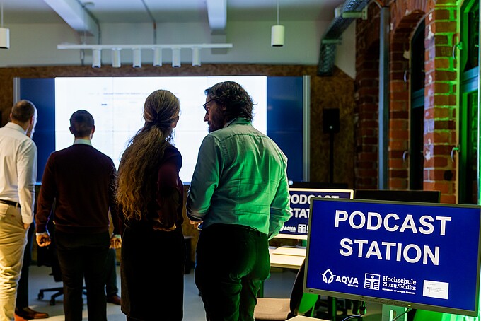 Das HSZG-Team des Transferprojekts Saxony⁵ setzte die Podcast-Produktion im Zittauer CELSIUZ mithilfe einer Dolmetscheranlage um – so konnten regionale Akteure direkt vor Ort in Audioform an den Erfahrungen und Erkenntnissen teilhaben, die im Forschungsprojekt entstanden sind. Der Podcast entstand in Zusammenarbeit mit dem Podcast-Produzenten und Story-Consultant Jan Schilling vom Akustikwerk in Dessau.