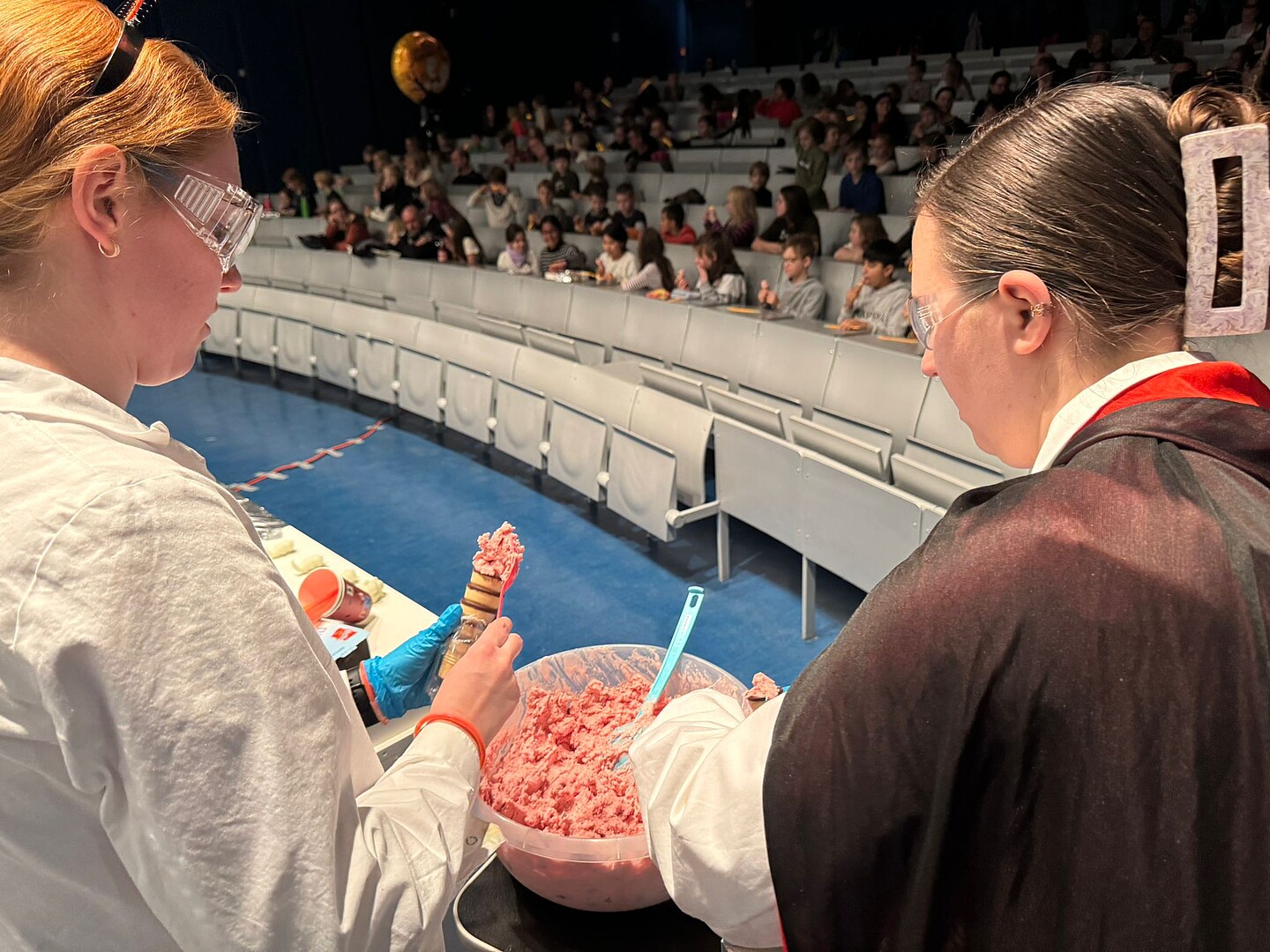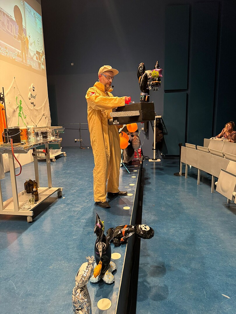 Das Team um Diplomchemiker Matthias Jeschke brachte bereits im Vorfeld zur Chemieschauvorlesung Kinderaugen zum Leuchten. Im Rahmen der Kinderakademie fand am 7. November 2025 die Chemieschauvorlesung für Kinder unter dem Titel „Halloween mal anders – die schaurige Chemievorlesung“ statt. Die Veranstaltung richtete sich ausschließlich an Kinder zwischen 8 und 12 Jahren. Spannende und kindgerechte Experimente verbanden Wissenschaft mit einem schaurig-spaßigen Thema.