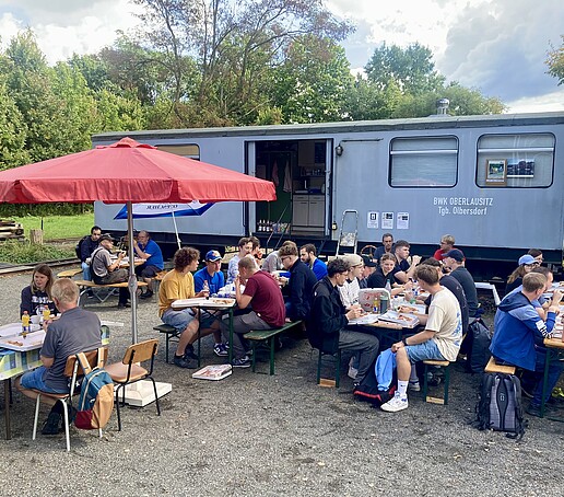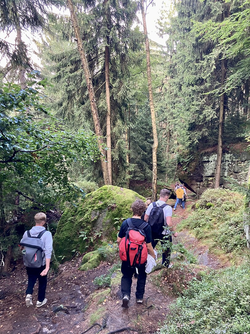 Nach der gemeinsamen Anreise startete die Gruppe mit einer Fahrt in der historischen Schmalspurbahn, die einen stimmungsvollen Auftakt bot. Zur Stärkung fand im Anschluss am Dampfbahncafé in Oybin ein gemeinsames Grillen statt, welches Raum bot für erste Gespräche und den Aufbau neuer Kontakte. Der weitere Verlauf des Programms führte die Studierenden auf eine Wanderung zum Töpfer, wo Naturerlebnis und Bewegung gleichermaßen im Mittelpunkt standen. Den Abend verbrachten die Studierenden gemeinsam und erkundeten die Zittauer Gastronomie.