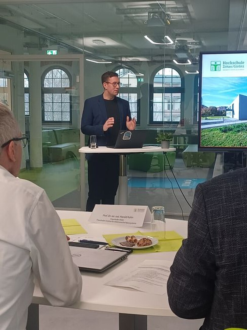 „Quantum Saxony“ war eines der ausgewählten Projekte, welche Wissenschaftlerinnen und Wissenschaftler der HSZG Ende Januar ihren Forscherkolleginnen und -kollegen des Fraunhofer-Instituts ENAS vorstellten. Als weitere aktuelle Forschungsvorhaben und Forschungszentren der HSZG wurden u.a. präsentiert und diskutiert: Das Science Center Oberlausitz (SCO-TTi) der HSZG, das Projekt EKI-Saxony (Energieautarke Kommunikations- & Informationstechnologien aus Sachsen für industrielle Anwendungen), Themen des Instituts für Prozesstechnik, Prozessautomatisierung und Messtechnik (IPM) wie RoSA-ReCycle (Robotic Sorting and Automation for Recycling), CircEcon (Center for Green Circular Economy) oder die HSZG-Projekte ZukLOS (Zukunftslernort Oberlausitz) oder Green Zitty mit dem Ziel einer wissenschaftlichen Landesgartenschau in der Region der Oberlausitz in den kommenden Jahren.