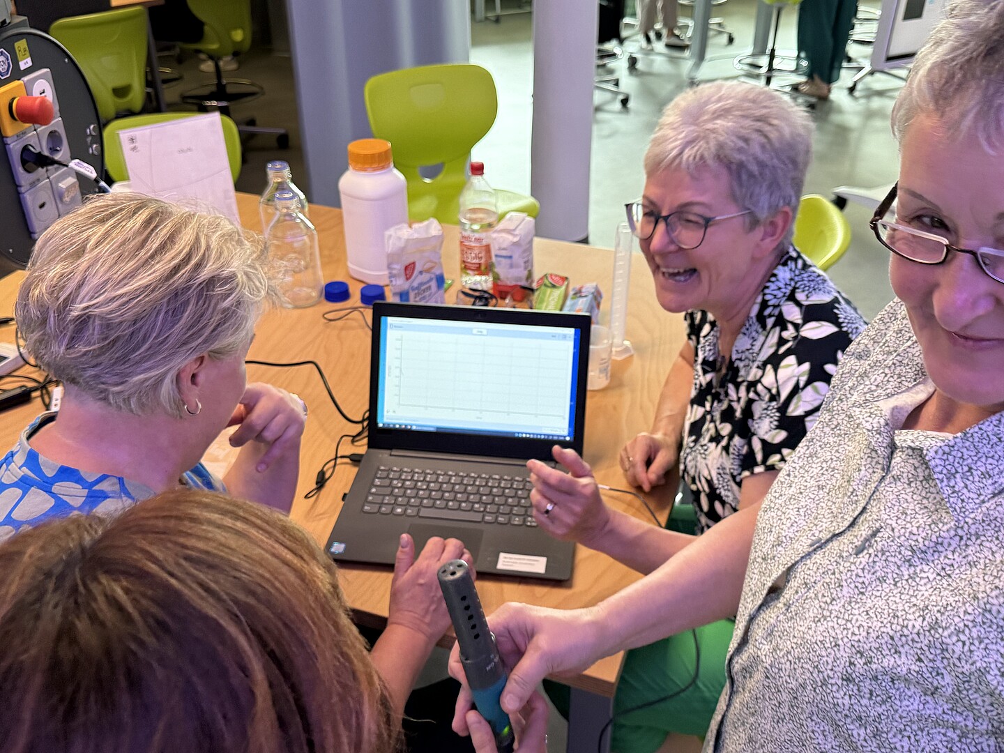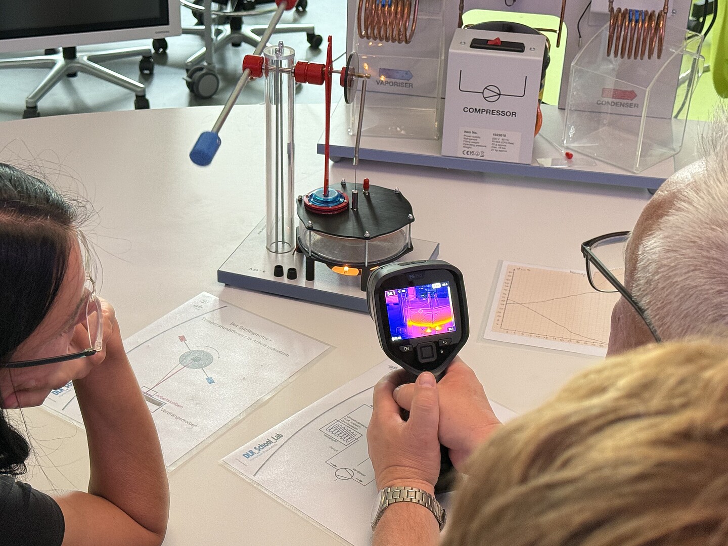 • Beim Lehrerbesuch im Schülerlabor erhielten rund 20 Lehrkräfte der Oberschule Innenstadt Görlitz Einblicke in die Arbeit des DLR_School_Lab. Sie führten selbst Experimente durch und informierten sich über Einsatzmöglichkeiten im Unterricht.